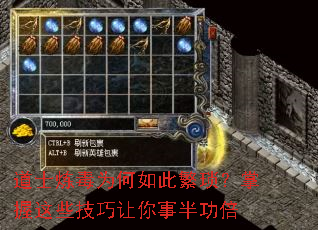 3.道具辅助:使用“背包扩容符”和“自动整理戒指”避免频繁回城,效率提升30%。